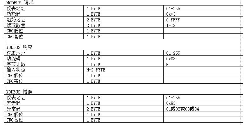 2.1 本儀表使用了MODBUS協(xié)議中1條指令: